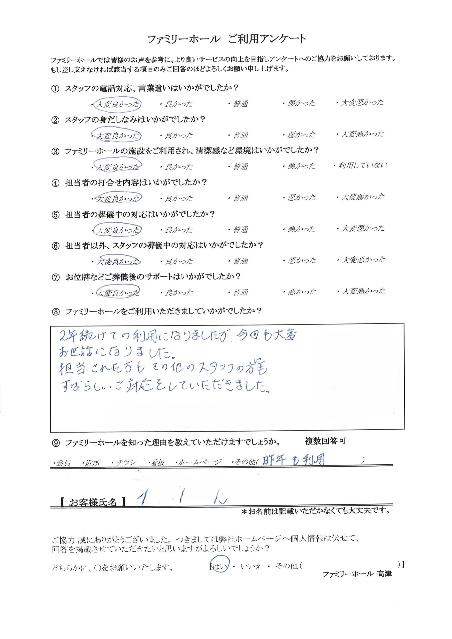 【お客様の声】良い間で喪主をリードしてくださいました。