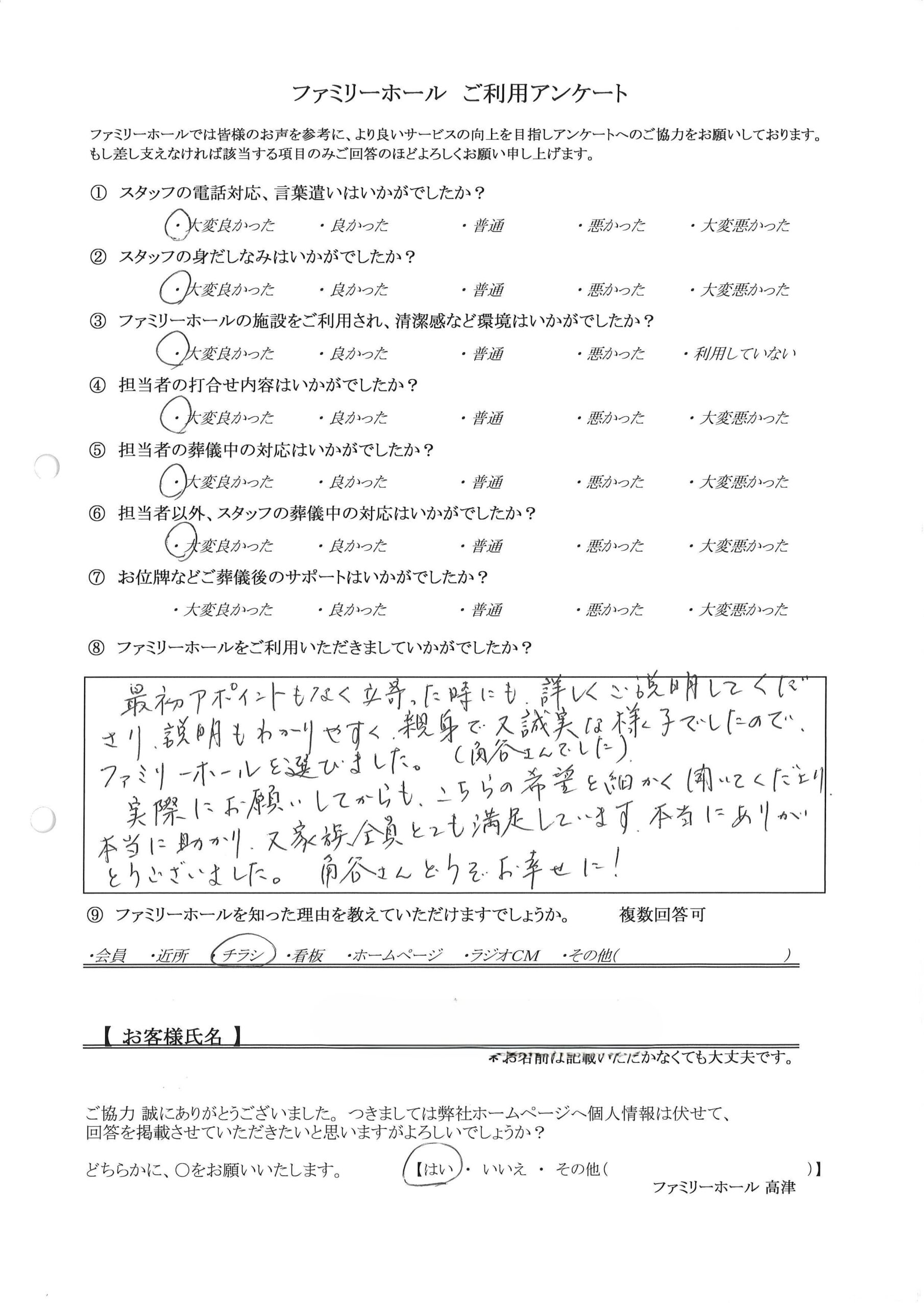 【お客様の声】良い間で喪主をリードしてくださいました。